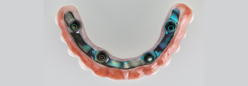 Несъемный протез фиксируется всего на четырех имплантатах, что делает решение подходящим для пациентов с полным отсутствием зубов или их критической потерей.
